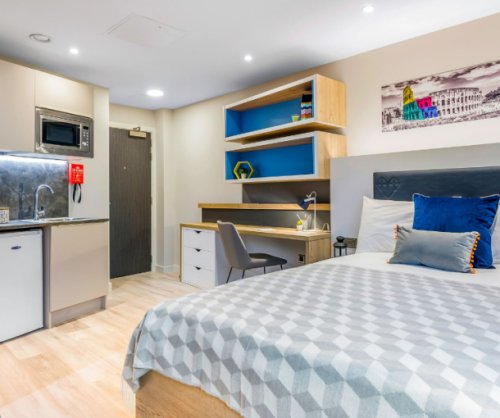 Based close to Brayford Waterfront, and just minutes away from the university campuses, IconInc Gravity is a brand-new luxury all-inclusive student accommodation. Choose from seven state-of-the-art apartment styles, all of which come complete with a double/king size bed, individual kitchen, HD smart TV, private study area and en-suite bathroom.