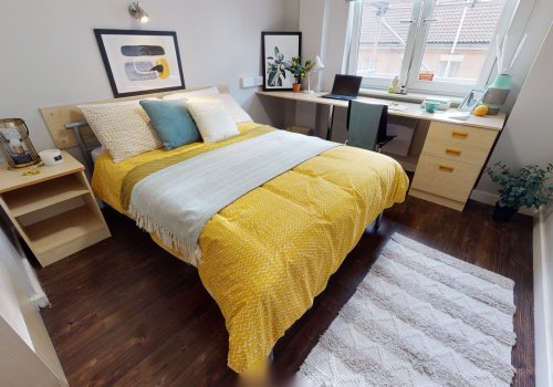 The building has en suite rooms with a bed, study area and shower room, as well as studios which add a kitchenette and more living space. Grosvenor House features social areas inside and out, with a courtyard and lounge with TV and games, as well as a study space.
