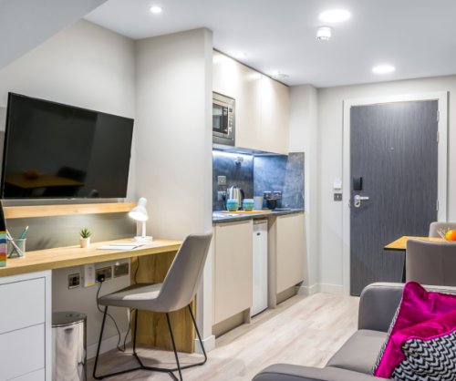 A 24-hour concierge team is always on hand and rest assured, the place is secure with key card access to each part of your new home. Our luxury all-inclusive apartments offer modern design and cutting-edge technology, from the flat screen smart TV and en-suite bathroom to the plush double or king size bed and fitted kitchen. All apartments come beautifully furnished with dynamic storage solutions and superfast broadband with high-speed Wi-Fi.